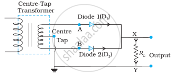 With the help of a circuit diagram, explain how a full wave rectifier gives output rectified voltage corresponding to both halves of the input ac voltage.