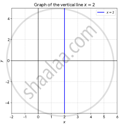 Constant x-value: For any point on this line, the x-coordinate is always 2, regardless of the y-value e.g., (2. –5), (2, 0), (2, 10).