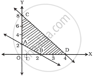 Draw the rough graph and shade the feasible region for the inequalities x + y ≥ 2, 2x + y ≤ 8, x ≥ 0, y ≥ 0.