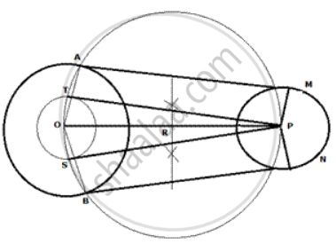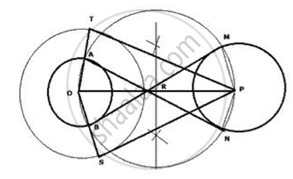 (vii) Join OT and OS and extend lines to meet the bigger cir de at A and B.