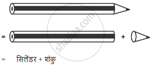 एक किनारे पर नुकीली बनायी गयी एक बेलनाकार पेंसिल निम्नलिखित का संयोजन एक शंकु और एक बेलन है।