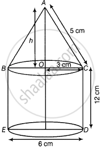 एक रॉकेट का आकार एक लंबा वृत्तीय बेलन के रूप का है जिसका निचला सिरा बंद है। इसके ऊपर बेलन की आधार त्रिज्या के बराबर आधार त्रिज्या वाला का एक शंकु रखा हुआ है। बेलन के व्यास और ऊँचाई क्रमशः 6 cm और 12 cm है। यदि शंक्वाकार भाग की तिर्यक ऊँचाई 5 cm है, तो रॉकेट का कुल पृष्ठीय क्षेत्रफल और आयतन ज्ञात कीजिए (π = 3.14 का प्रयोग कीजिए)।