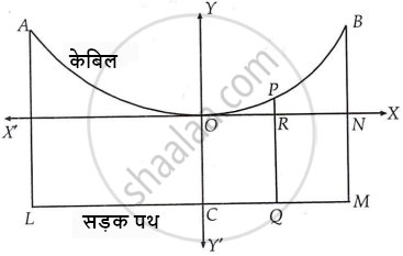एक सर्वसम भारी झूलते पुल की केबिल (cable) परवलय के रूप में लटकी हुई है। सड़क पथ जो क्षैतिज है 100 मीटर लंबा है तथा केबिल से जुड़े ऊर्ध्वाधर तारों पर टिका हुआ है, जिसमें सबसे लंबा तार 30 मीटर और सबसे छोटा तार 6 मीटर है। मध्य से 18 मीटर दूर सड़क पथ से जुड़े समर्थक (supporting) तार की लंबाई ज्ञात कीजिए।