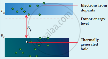 The energy level of the loosely attached fifth electron from the dopant is found just below the conduction band edge and is called the donor energy level. At room temperature, these electrons can easily move to the conduction band with the absorption of thermal energy. It is shown in the figure. Besides, an external electric field also can set free the loosely bound electrons and lead to conduction.