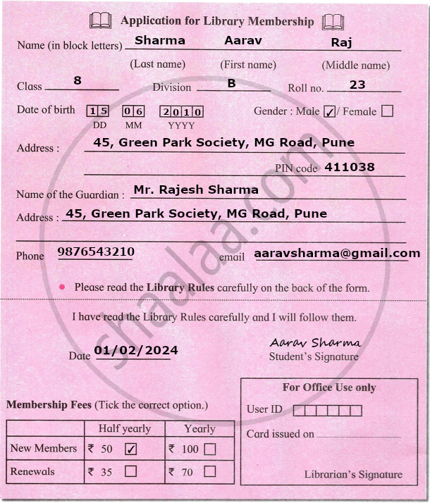 Here is a specimen of an application form for a library membership. Can you fill it on your own?