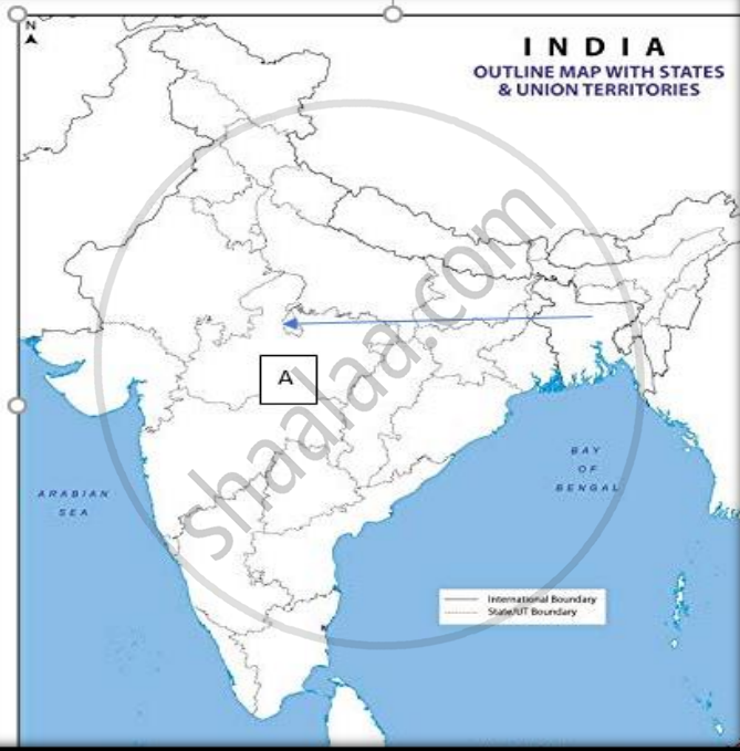 On the same outline map of India, a place related to the centres of the Revolt of 1857 is marked as A. Identify it and write its name on the line drawn near them.