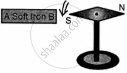 Place a flat piece of iron AB, in between the bar magnet and magnetic needle. It is observed that the south end of the needle is repelled. Remove the iron piece AB. It is observed that needle. comes back to its original position. Repeat the experiment, but remove the bar magnet instead of iron piece. We will observe that the needle does not get repelled and remains continuously in its original position.