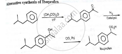 Explain conventional and green chemistry route for production of Ibuprofen. Highlight the green chemistry principle involved.