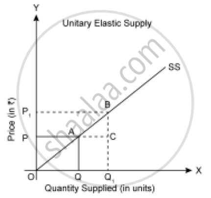 If the straight line supply curve passes through the origin, then the elasticity of supply will be equal to one `E_S = (OQ)/(OQ) = 1`