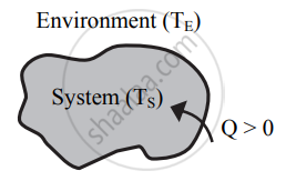 In this case, Q is negative. - For TS = TE, as shown in figure (c), the system and the environment are in thermal equilibrium and there is no transfer of energy i.e., Q = 0.