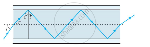 The following figure shows a cross-section of a ‘light pipe’ made of a glass fiber of refractive index 1.68. The outer covering of the pipe is made of a material of refractive index 1.44. What is the range of the angles of the incident rays with the axis of the pipe for the following phenomena to occur.