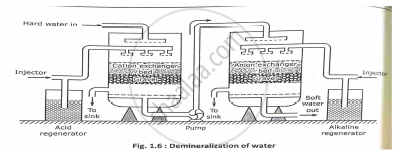 After cation exchange column the hard water is passed through anion exchange column, which removes all the anions like `SO_4^(2-)`CI etc, present in the water and equivalent amounts ofOH-ions are released from this column to water.