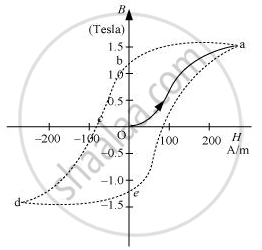 The hysteresis curve (B-H curve) of a ferromagnetic material is shown in the following figure.