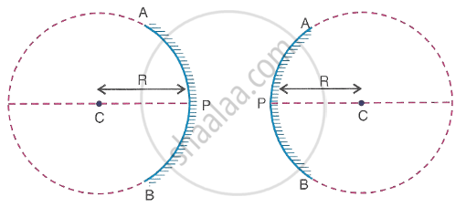 “The midpoint of aperture AB of the mirror is called pole.” P is pole of mirror.Centre of curvature: “The centre of a hollow sphere of which the mirror forms a part.” It is represented by the symbol ‘ C ‘
