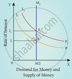 LP is the liquidity preference curve. M2 shows the supply curve of money to satisfy the speculative motives. Both curves intersect at point E which is the equilibrium. Here, the rate of interest is I.