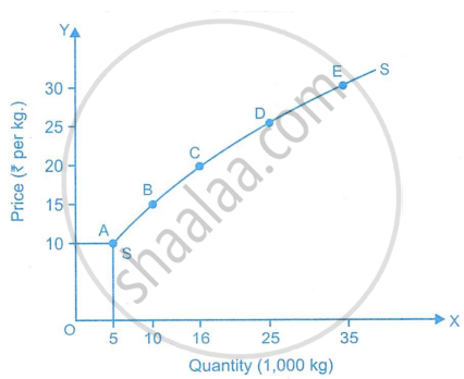 | Price of Good X (₹ per kg) | Quantity Supplied of Good X (kg per month) | Points on Supply Curve |