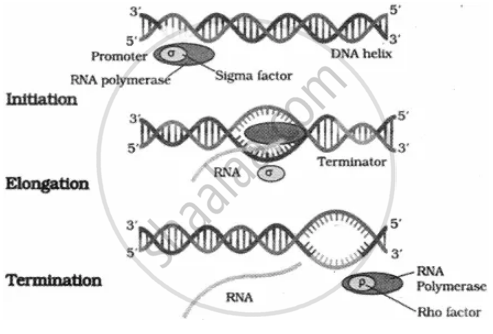 Transcription is the process of copying genetic information from sense strand of DNA into RNA, only a segment of DNA is transcribed that only one of the two strands is copied. In prokaryotes, transcription occurs in contact with cytoplasm as their DNA lies in cytoplasm. Transcription requires a DNA dependent enzyme RNA polymerase. Prokaryotes have only one RNA polymerase which synthesises all types of RNAs. The transcription includes following steps :