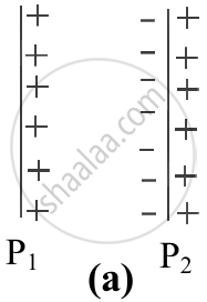 - Now consider another insulated metal plate P2 held near plate P1. By induction, a negative charge is produced on the nearer face and an equal positive charge develops on the farther face of P2 as shown in figure (a) below.