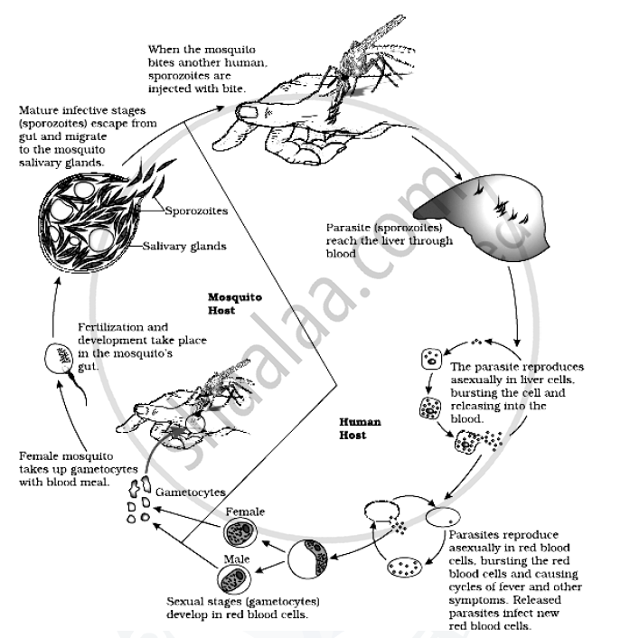 Anopheles mosquito. The parasites initially multiply within the liver cells and then attack the red blood cells (RBCs) resulting in their rupture. The rupture of RBCs is associated with release of a toxic substance, haemozoin, which is responsible for the chill and high fever recurring every three to four days.