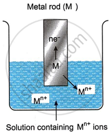 When a metal atom M present on the electrode loses n electrons, it gets oxidised into Mn+ ion as shown below.