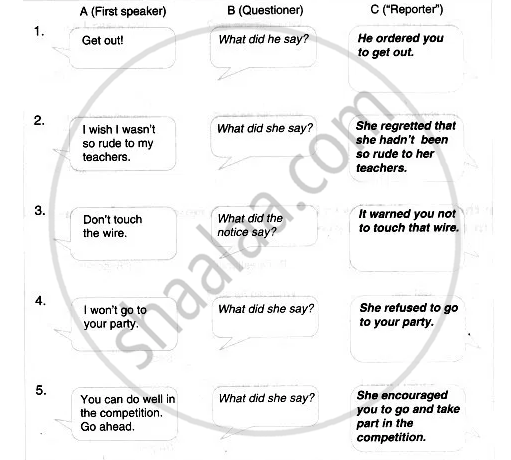 Fill in the empty bubbles in Column C with reports of what was said in Column A, as in the box given above.