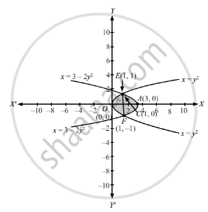 \[\text{ area CEAC }= \int_1^3 \left| y_2 \right| dx ...........\left\{\text{ where }Q\left( x, y_2 \right)\text{ is a point on }x = 3 - 2 y^2 \right\}\]