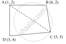 Let the vertices of the quadrilateral be A (1, 2), B (6, 2), C (5, 3), and D (3, 4). Join AC to form two triangles ΔABC and ΔACD.