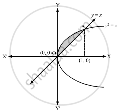 Solving \[y^2 = x\] and y = x, we get \[x^2 = x\]