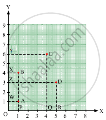 Draw perpendiculars AP, BP, CQ and DR from A, B, C and D on the x-axis. Also, draw perpendiculars AW, BX, CY and DZ on the y-axis.