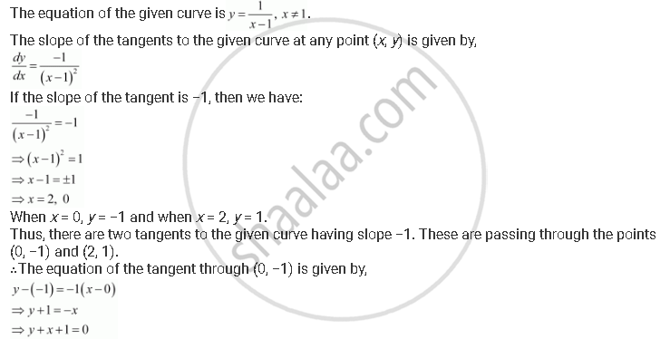 Find the equation of all lines having slope −1 that are tangents to the curve `y = 1/(x -1), x != 1`