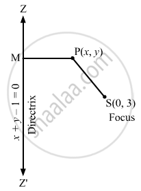 \[\Rightarrow\] \[\sqrt{(x - 0 )^2 + (y - 3 )^2} = 2\left( \frac{x + y - 1}{\sqrt{2}} \right)\]