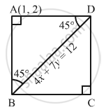 Here, we have to find the equations of sides AB and AD, each of which makes an angle of \[{45}^\circ\] with line 4x + 7y = 12