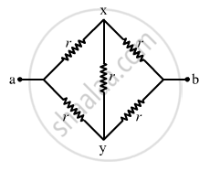 From the figure, it can be seen that axbya is a balanced Wheatstone bridge. The resistors in branch xy will, thus, become ineffective. The circuit can be simplified as under
