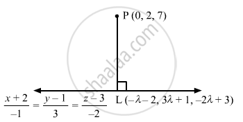 Let the coordinates of L be \[\left( - \lambda - 2, 3\lambda + 1, - 2\lambda + 3 \right)\]
