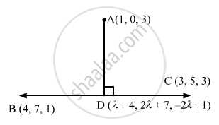 Let D be the foot of the perpendicular drawn from the point A (1, 0, 3) to the line BC.