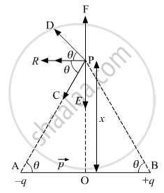 Consider a dipole consisting of two electric charges +q and −q between a small distance AB = 2a with centre O.