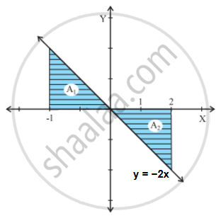 A = `int_-1^0 (-2x) dx + |int_0^2(-2x)dx|`