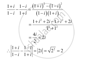 Find the modulus of `(1+i)/(1-i) - (1-i)/(1+i)`