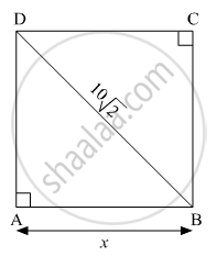 ⇒ `x^2 + x^2 = (10sqrt2)^2`