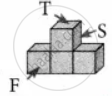 For each solid, three views are given. Identify for each solid, the corresponding Top, Front and Side (T, F and S) views.