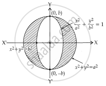 And area `{(x, y): x^2 + y^2 ≥ b^2 and x^2/a^2 + y^2/b^2 ≥ 1}` = 18π