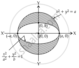 Given: Area `{(x, y): x^2 + y^2 ≤ a^2 and x^2/a^2 + y^2/b^2 ≥ 1}` = 30π
