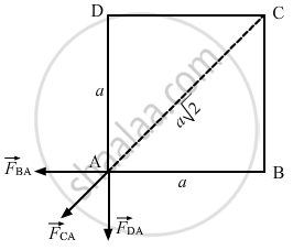 Four equal charges q are placed at the four comers A, B, C, D of a square of length a. The magnitude of the force on the charge at B will be ______.