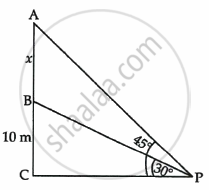 From a point P on the ground the angle of elevation of a 10 m tall building is 30°. A flag is hoisted at the top of the building and the angle of elevation of the top of the flag-staff from P is 45°. Find the length of the flag-staff and the distance of the building from the point P. (Take `sqrt3` = 1.732)