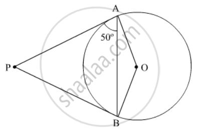 From an external point P , tangents PA = PB are drawn to a circle with centre O . If \[\angle PAB = {50}^o\] , then find \[\angle AOB\]