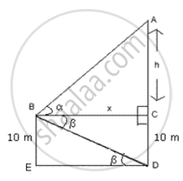 From a point 10 m above the ground , the angle of elevation of the top of a tower is α and the angle of depression is β . If tan α = `5/2` and tan β = `1/4` , calculate the height of the tower to the nearest metre .