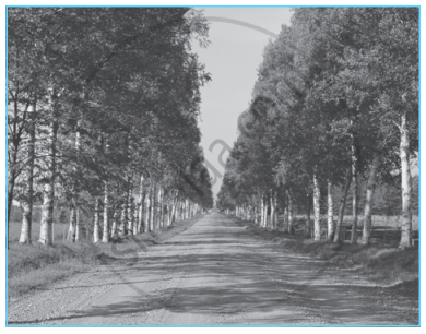 इससे इस गोचर का ज्ञान होता है कि जो वस्तुएँ दूर होती हैं वे निकट की वस्तुओं की तुलना में एक-दूसरे के निकट दिखती हैं। उदाहरण के लिए, समानान्तर रेखाएं- जैसे- रेल की पटरियाँ, दूरी बढ़ने पर एक-दूसरे में मिलती हुई दिखती हैं तथा लगता है कि वे क्षितिज पर समाप्त हो गई। रेखाएँ जितनी एक-दूसरे में मिलती हैं वे उतनी ही दूर दिखती हैं। - आकाशी परिप्रेक्ष्य :