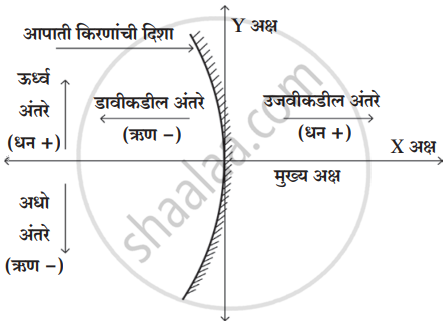 - मुख्य अक्षाला समांतर असणारी सर्व अंतरे आरशाच्या ध्रुवापासून मोजतात.
