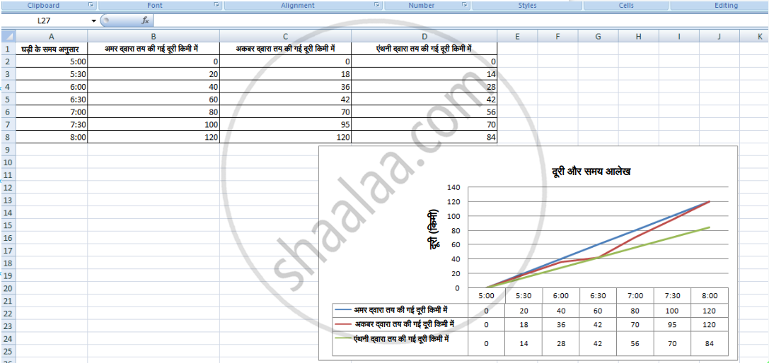 Microsoft Excel की सहायता से प्राप्त संख्यात्मक जानकारी का आलेख खींचना।