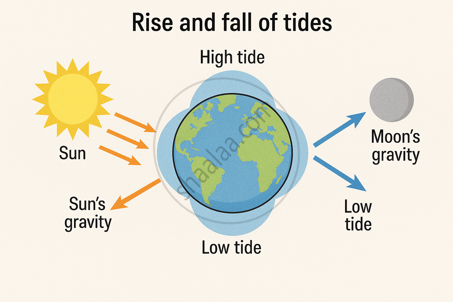 Give a diagrammatic representation of the process of the rise and fall of tides. - Geography